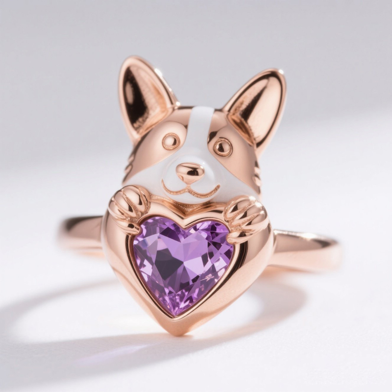 Sobefree Corgi Embraces Love Heart Cocktail Ring