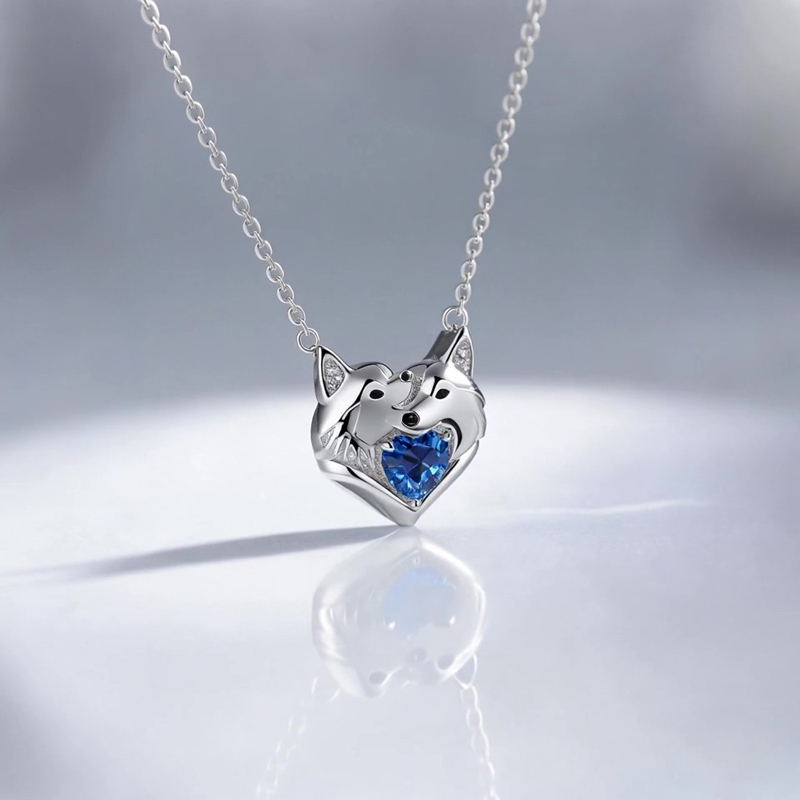 Sobefree Cuddling Husky Dogs Embrace Love Heart Birthstone Necklace