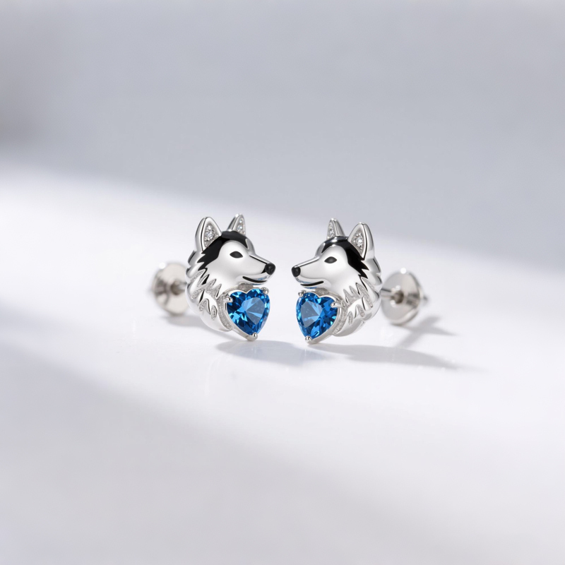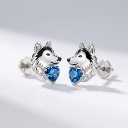 Sobefree Husky Dog Embraces Love Heart Stud Earrings