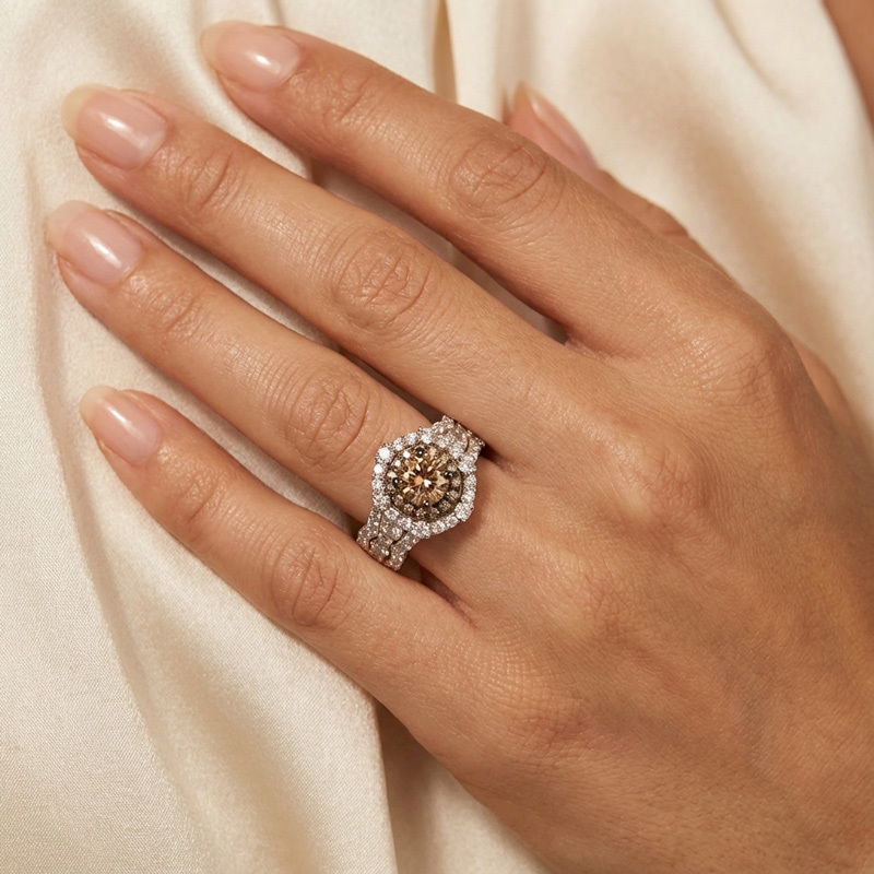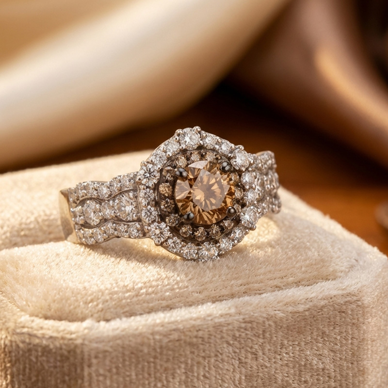 Sobefree Double Halo Round Cut Coffee Engagement Ring Sterling Silver
