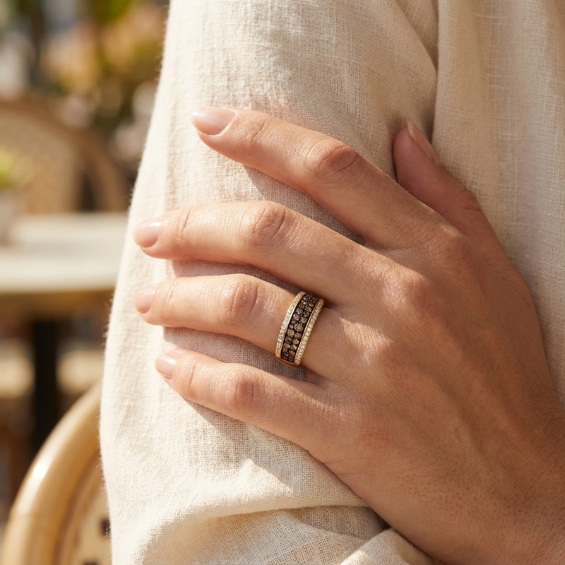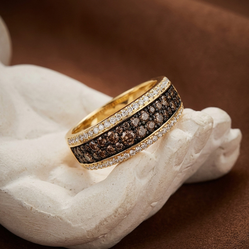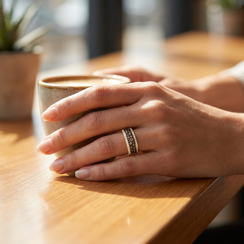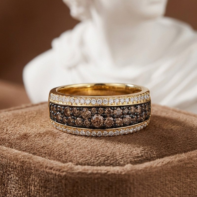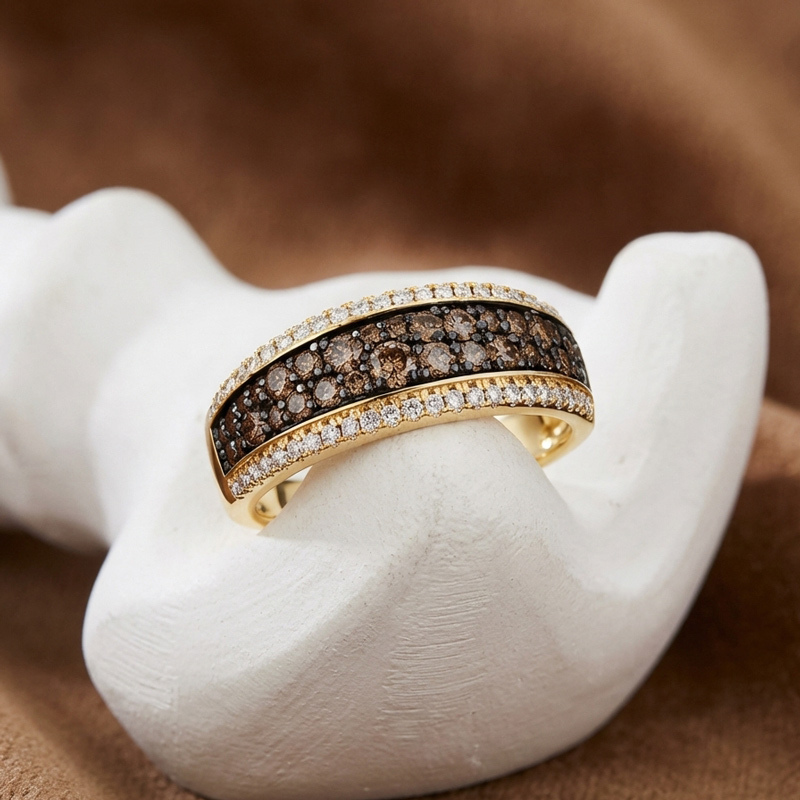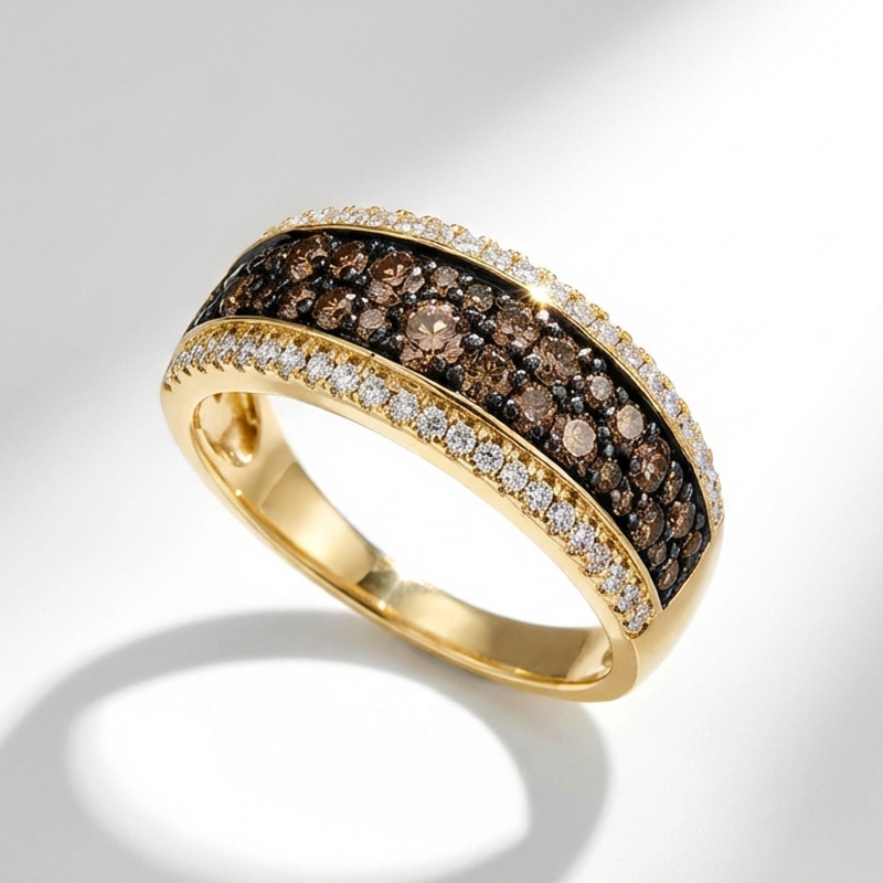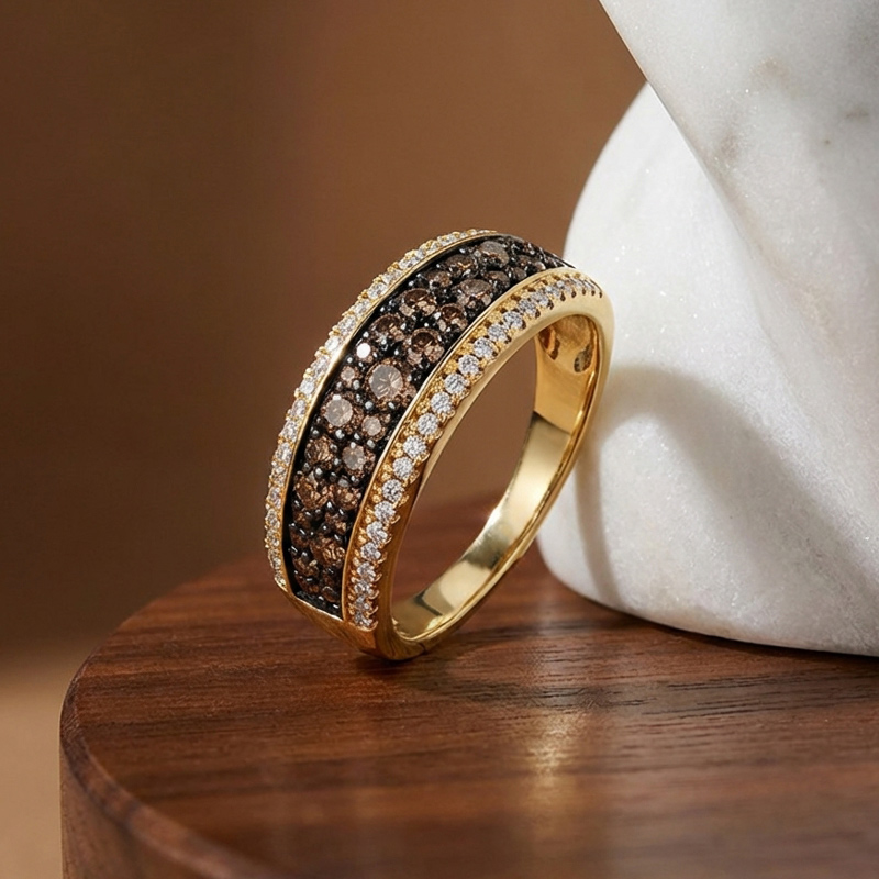 Sobefree Two Tone Round Cut Coffee Women's Wedding Ring Sterling Silver